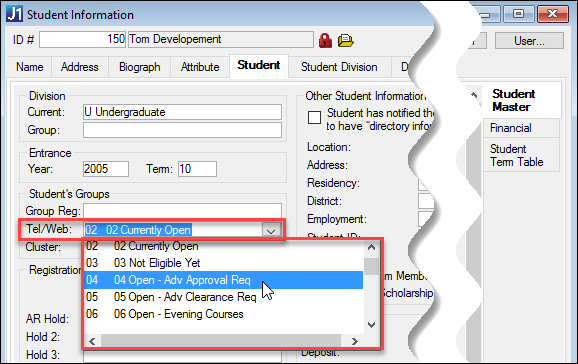 Other names for Web Registration Group include "Tel/Web Group", "Registration Group", and "Web Group". |