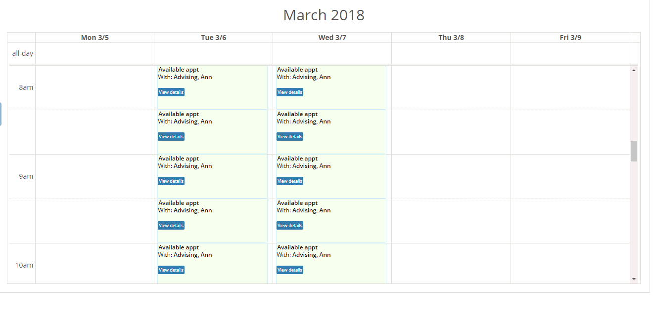 Why don't I see any available meeting times to choose from?