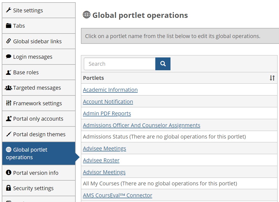Configuration settings in JICS can be done by roles with permission to access and administer global and portlet settings.